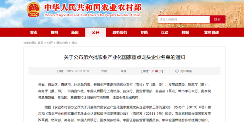 12月3日,农业农村部、国家发展改革委、财政部、商务部、中国人民银行、国家税务总局、中国证券监督管理委员会、中华全国供销合作总社联合印发通知,公布第六批 299 家农业产业化国家重点龙头企业名单,龙江万搏官方网站-万搏(中国)公司榜上有名。